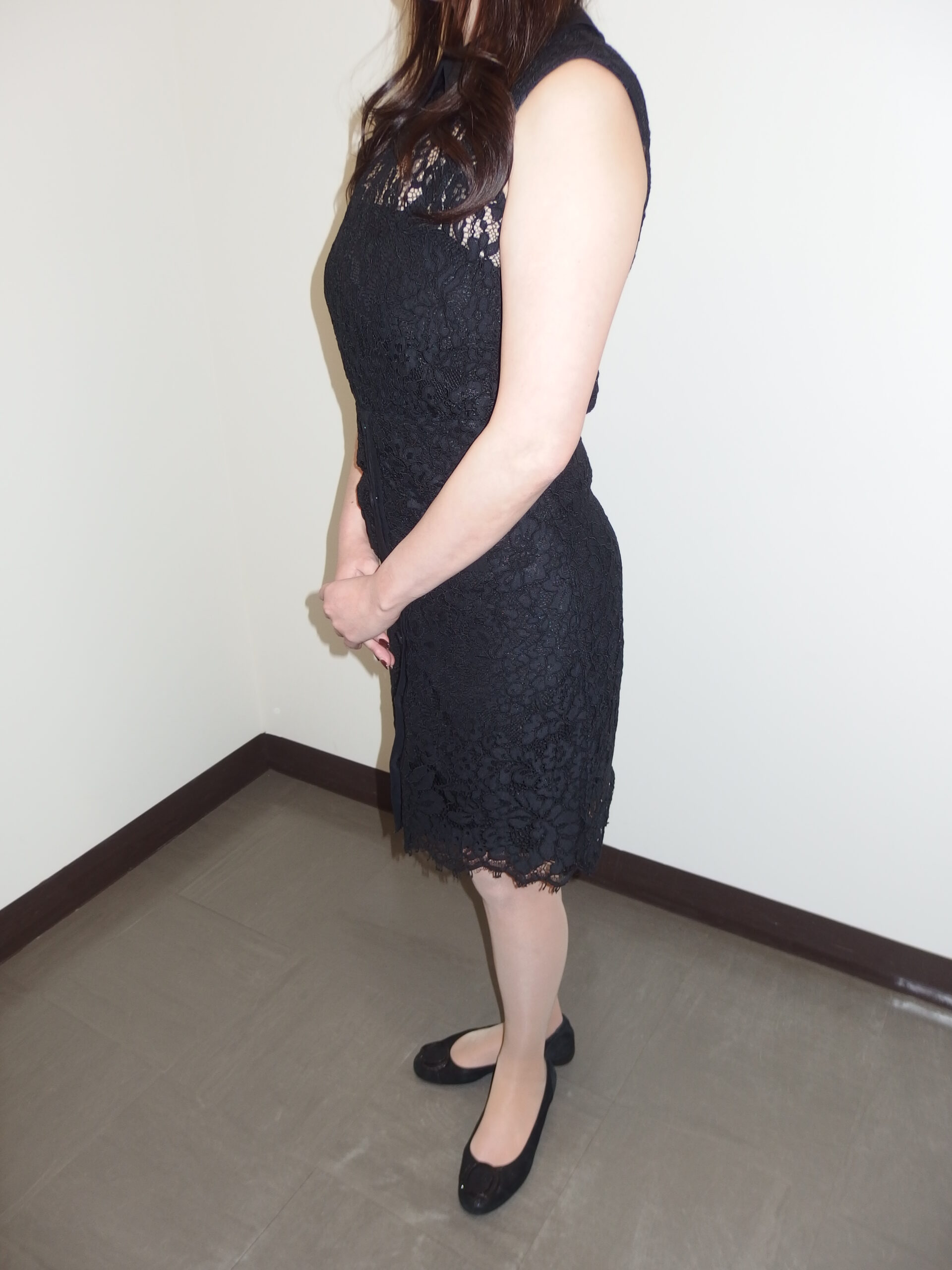 黒のレースドレス越しでもはっきりと分かる、その豊満で美しいバストラインには思わず目を奪われます!